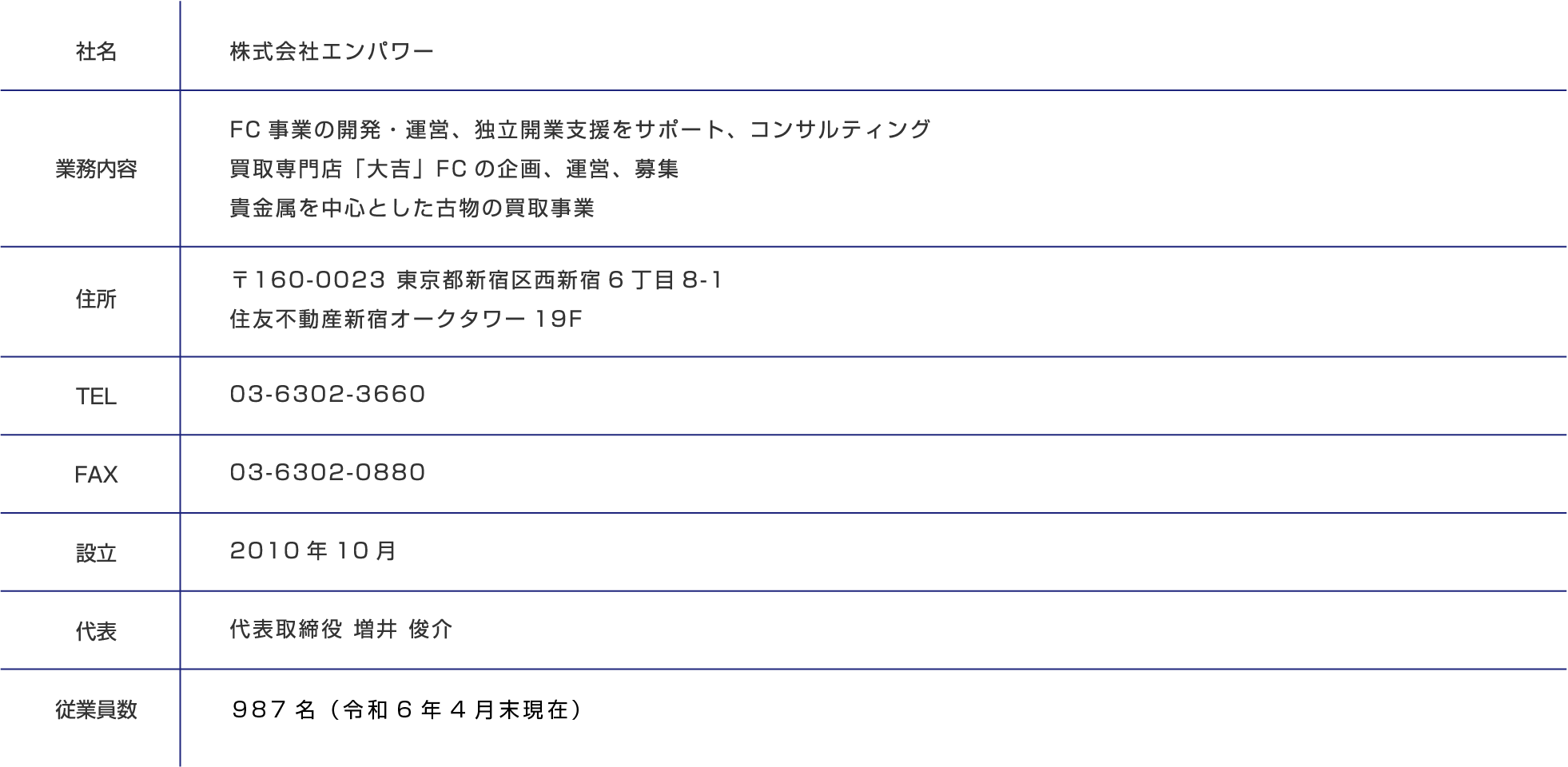 リユース市場は今後も成長を続けていくと言われており、買取専門店も同様であると考えております。買取大吉としても、収益性の高い商品の買取強化や、買取品目のさらなる拡大、本部のスケールメリットを活かした広告展開など、競合に勝つ ための施策に今後も取り組んで参ります。