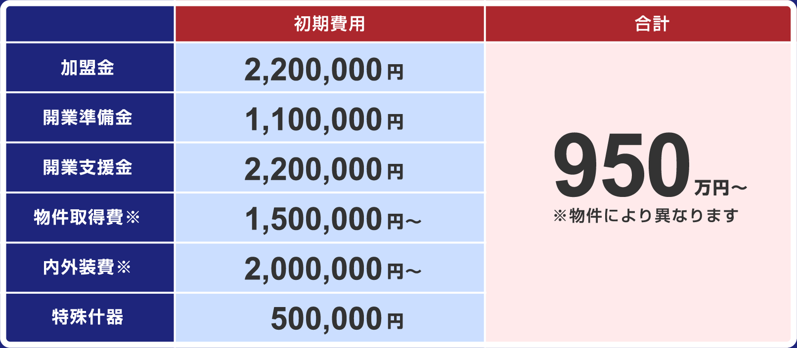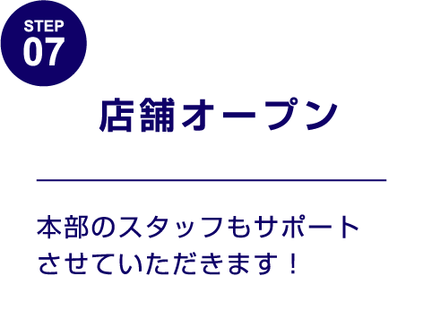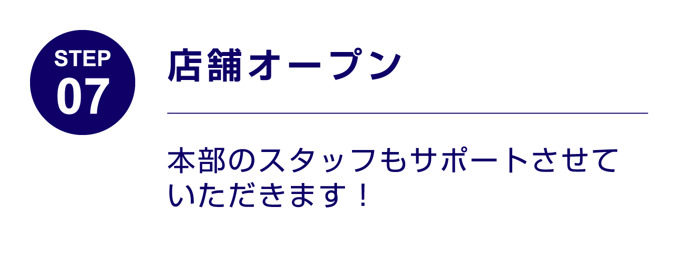 現在ご活躍されているオーナー様の約9割が未経験からの参入です。開業初期は本部のSVを店舗へ派遣し、オーナー様を徹底サポート。不安な点や疑問点をその場で解決いたします。また、開業後の本部サポートも万全なので、いつまでも安心して店舗運営を行うことができます。