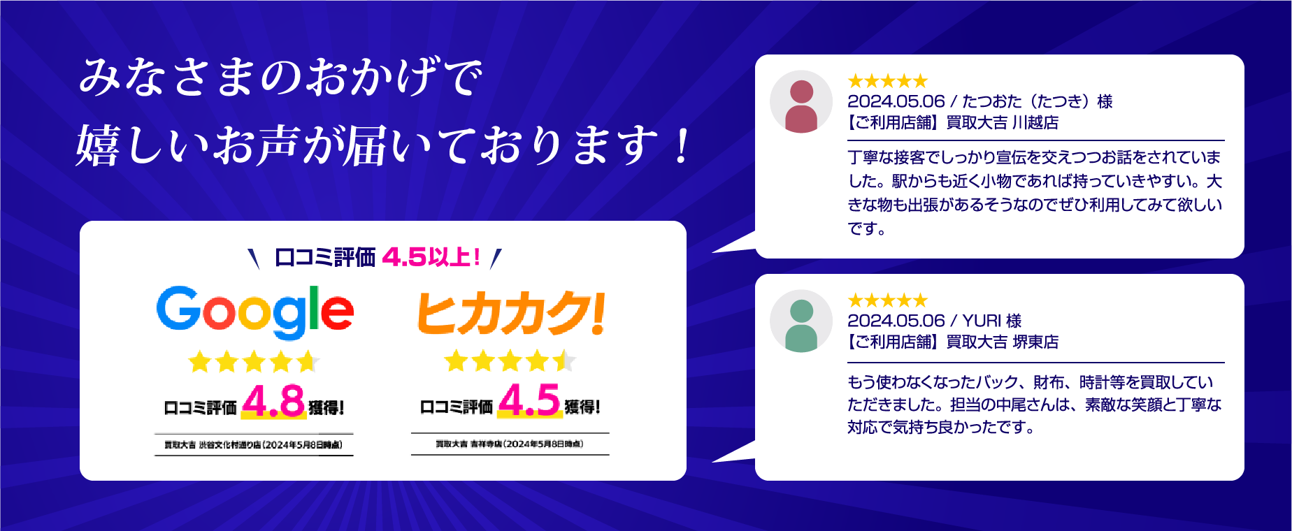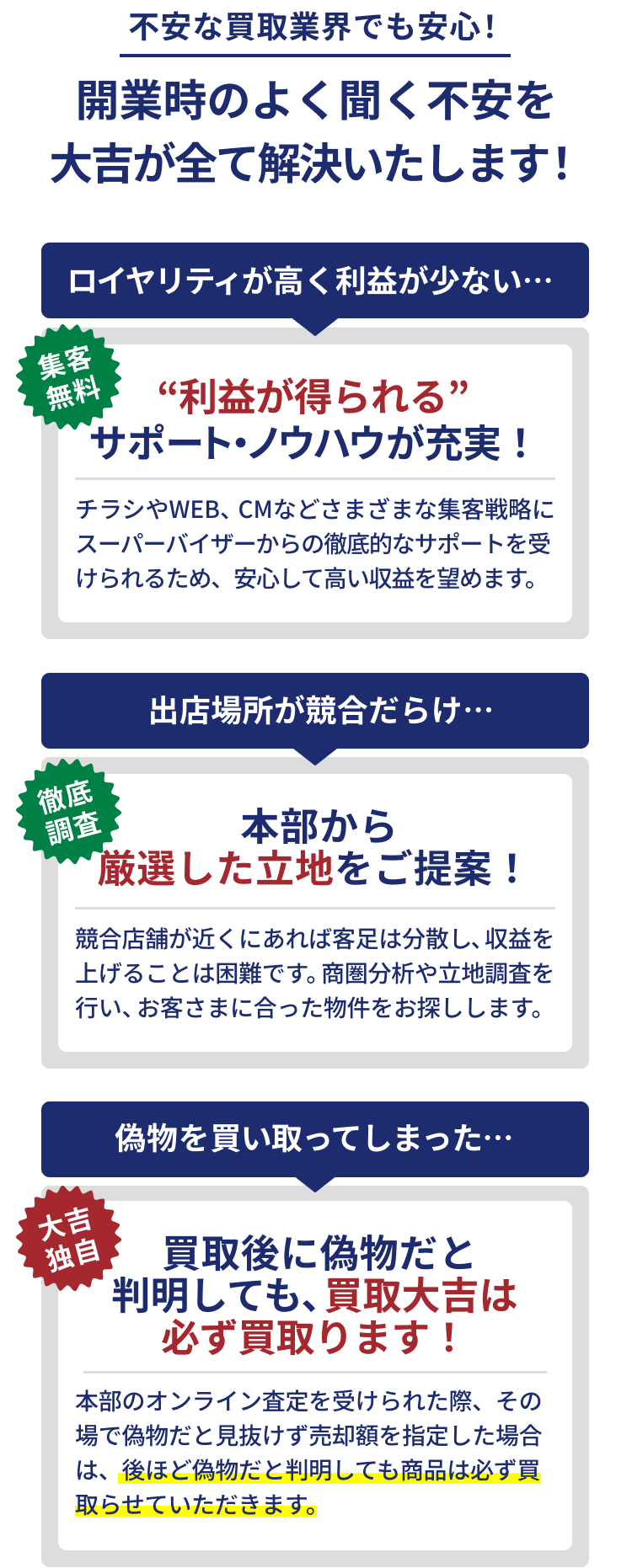 買取り業界のデメリットを克服できる大吉独自のメリットとなります!