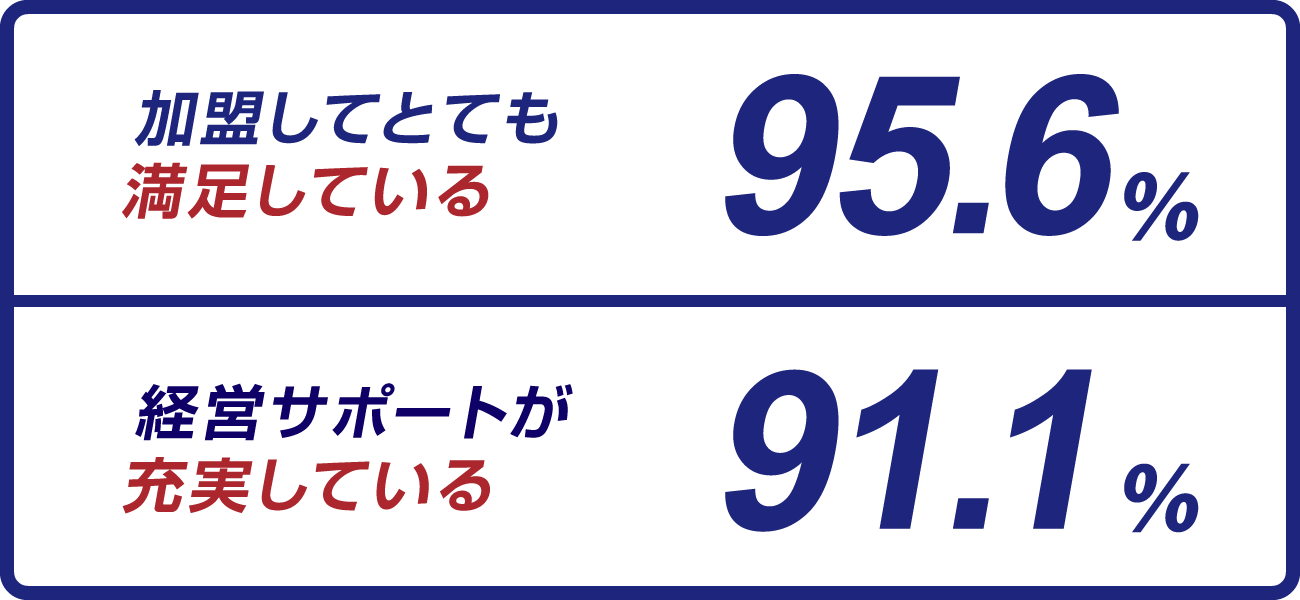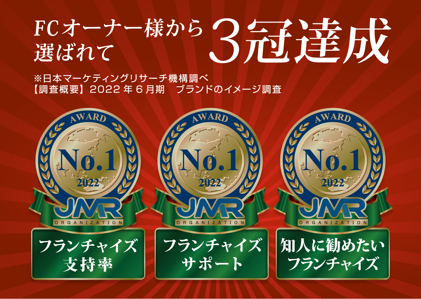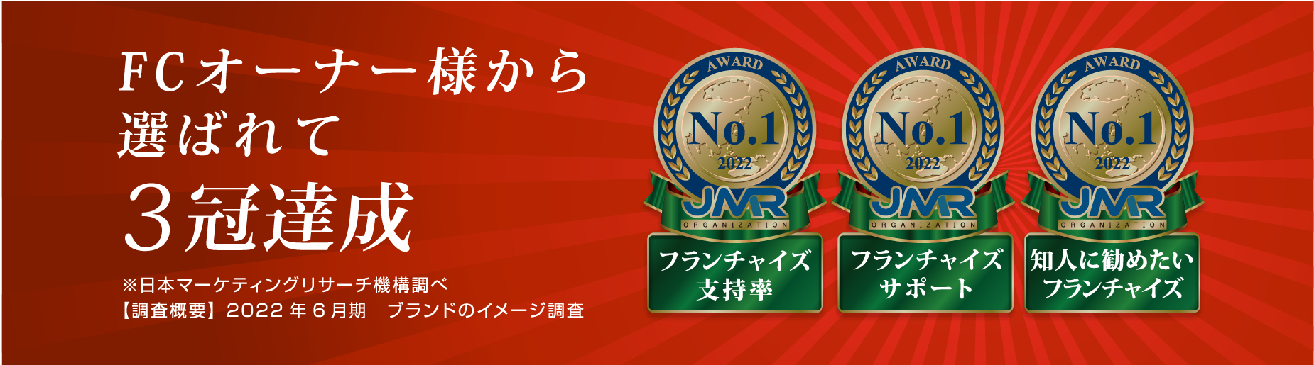 その結果が、現在の店舗継続率や加盟数につながっております。今後もさらにサポートを充実させ、オーナー様に満足していただけるフランチャイズを目指してまいります。